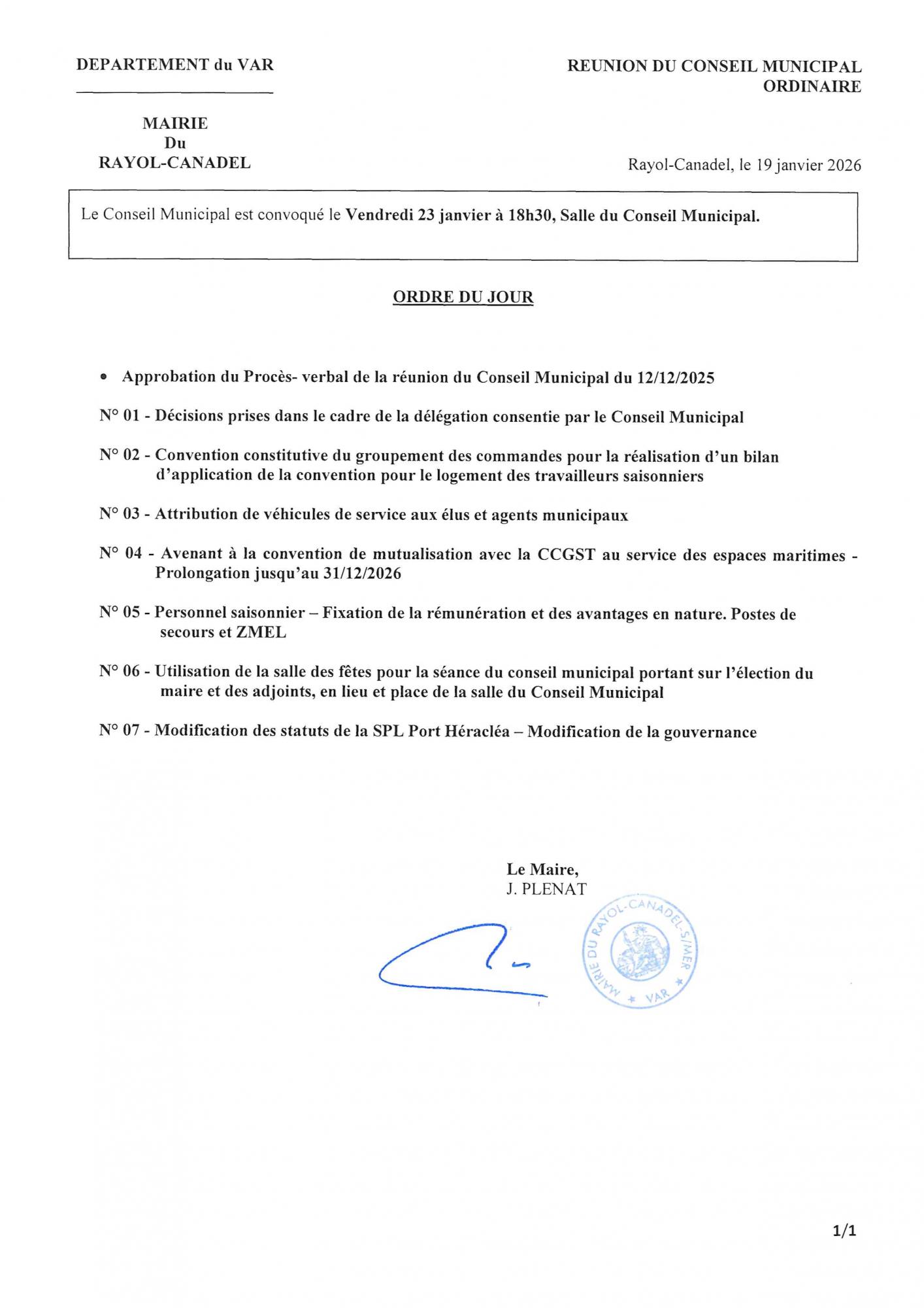 Le prochain conseil municipal se tiendra le vendredi 23 janvier 2026 à 18h30 dans la Salle du Conseil Municipal.