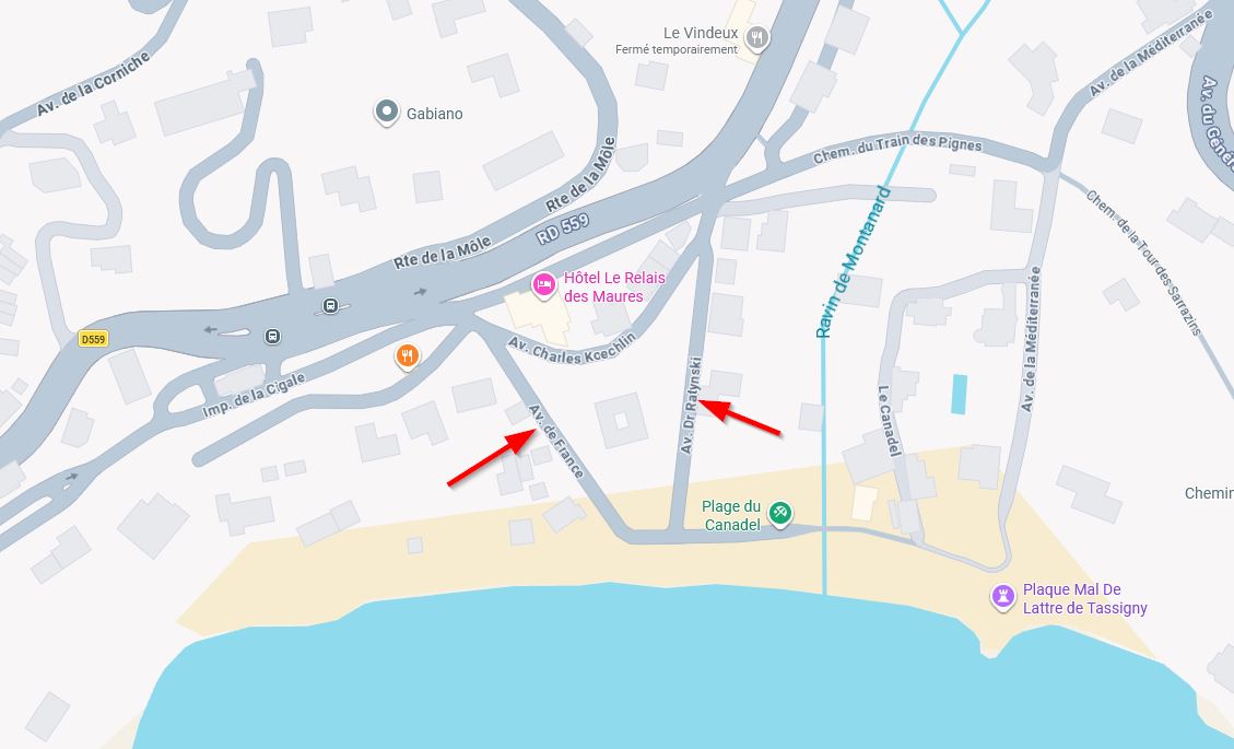 En raison de travaux de voirie, l’avenue de France ainsi que l’avenue du Dr Ratynski, au niveau de la plage du Canadel, sont fermées à la circulation pour une durée d’environ dix jours.