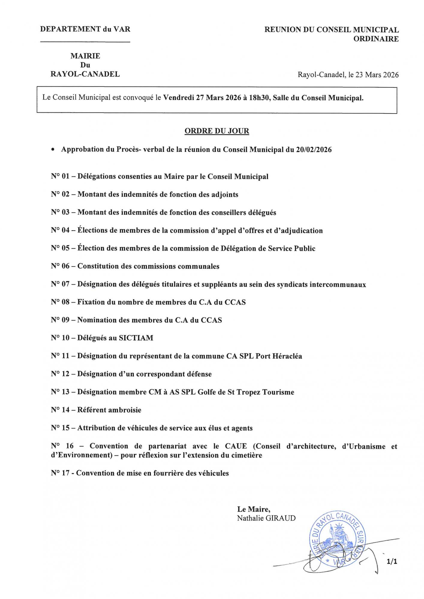 Conseil municipal du 27 mars 2026